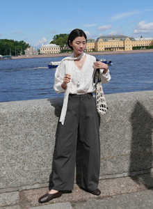 Shijian プライベート パンツ ミッドウエスト デザイン オールド マネー スタイル シミターレジャー パンツ リラックス スリミング 万能パンツ 01881