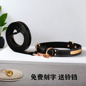 狗圈脖圈牛皮狗狗项圈刻字大中小型犬牵引绳结实狗绳子猫铃铛