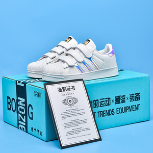 儿童贝壳头板鞋中大童夏季真皮女童运动鞋三条杠男童橡胶软底