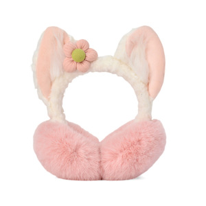 大きなウサギの耳折りたたみイヤーマフ E851 レザーパウダー
