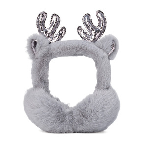 スパンコール付き猫耳イヤーマフ Q2631 ブラック