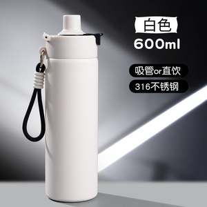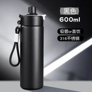 大容量户外运动健身水杯316不锈钢保温杯带提绳双饮吸管学生杯子