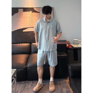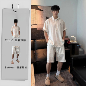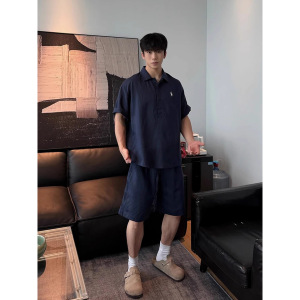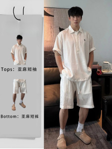 老钱风天丝亚麻套装男款夏季气质一整套ootd穿搭polo衫短裤两件套