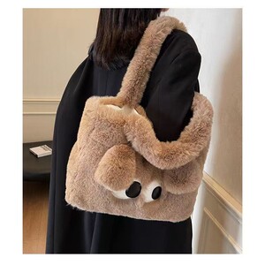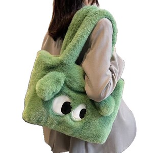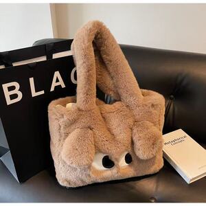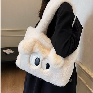 可爱毛绒单肩包包女新款大眼毛毛通勤包百搭大容量托特手拎斜跨包