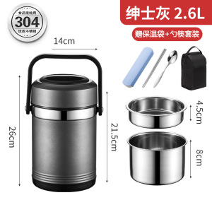 304保温桶2600ML【绅士灰】+保温袋+餐具 长效保温12小时✓