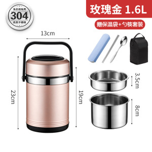 304保温桶1600ML【玫瑰金】+保温袋+餐具 长效保温12小时✓