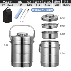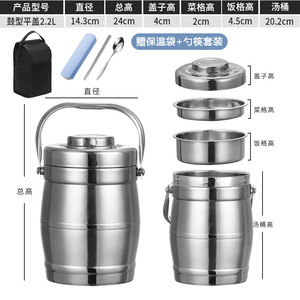 不锈钢保温提锅鼓型真空饭桶饭篮大容量2/3层饭盒学生上班便当盒