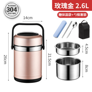 304保温桶2600ML【玫瑰金】+保温袋+餐具 长效保温12小时✓