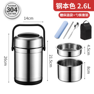 304保温桶2600ML【钢本色】+保温袋+餐具 长效保温12小时✓