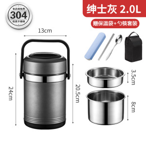 304保温桶2000ML【绅士灰】+保温袋+餐具 长效保温12小时✓