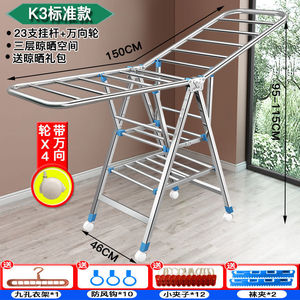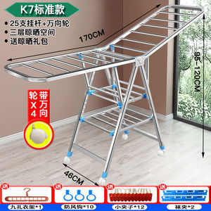 晾衣架落地折叠室内外家用不锈钢阳台凉衣服架杆婴儿晾晒被子