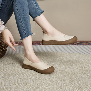 头层牛皮2025一脚蹬中老年真皮妈妈鞋女平底浅口软底复古女单鞋子