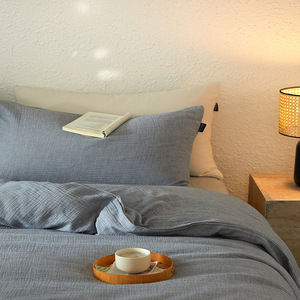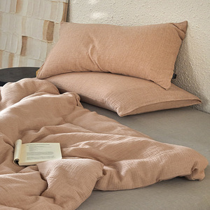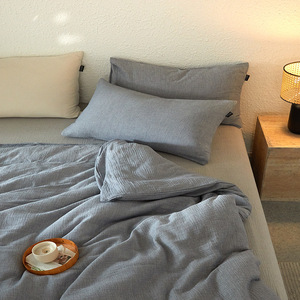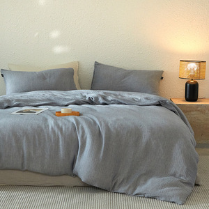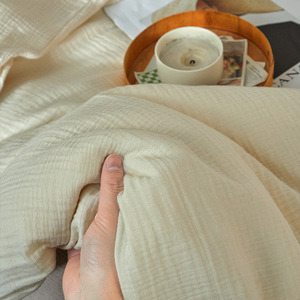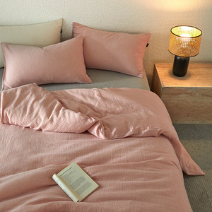 2025新款A类母婴幼级全棉纯色双层棉纱皱皱纱四件套纯棉床上用品