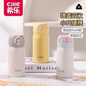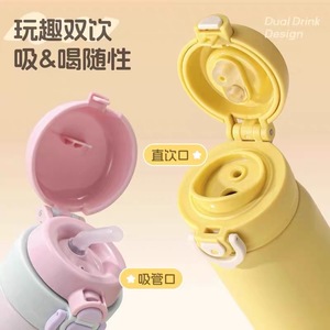 希乐保温杯女新款2025高颜值水杯儿童吸管杯子男学生上学专用水壶