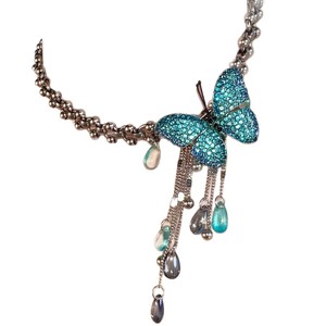 甜酷辣妹哥特风镶钻蝴蝶项链水晶水滴流苏女轻奢小众高级感锁骨链