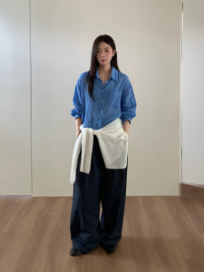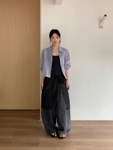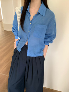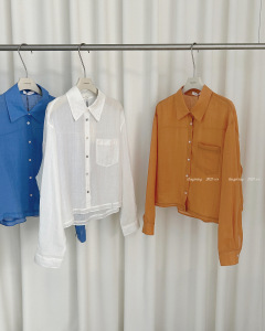 Han Xun 薄いクラシック多用途リネンシャツ女性のための 2025 初秋の新しい無地ルーズボタンカーディガン 25482