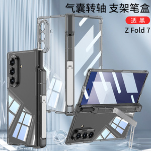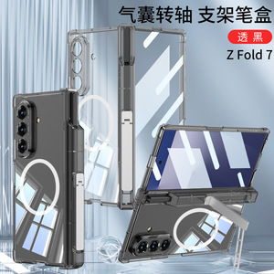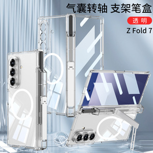 Samsung zfold7 携帯電話ケース、エアバッグ、透明ワイヤレス充電器、パーソナライズされたペンホルダー、回転軸、オールインクルーシブスタンド、折りたたみケースに適しています。