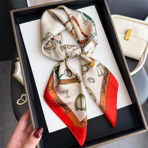 韩版印花时尚锁链丝巾方巾高级感披肩防晒系脖小方巾头巾女士围巾