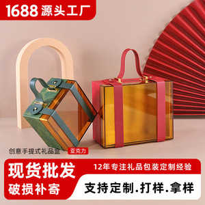 新款亚克力手提商务伴手礼回礼盒伴娘伴郎婚庆实用透明礼物盒批发