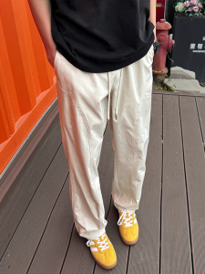 美式基础斜切百搭休闲裤男春夏显瘦显高潮流宽松直筒工装微喇长裤