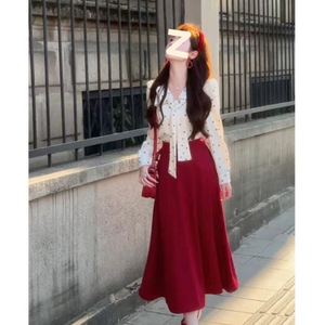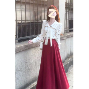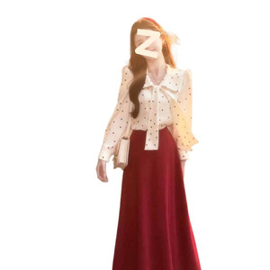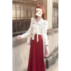 大码女装新款春秋季穿搭一整套法式甜美风洋气波点衬衣半身裙两件