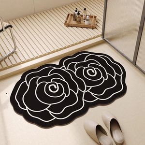 简约奶油风浴室吸水地垫卫生间门口硅藻泥防滑脚垫厕所异形地毯