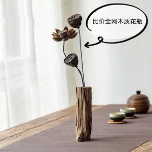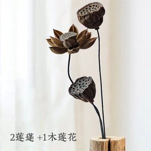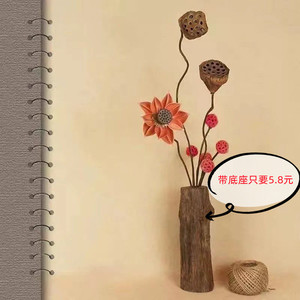 复古自然枯木实木禅意干花真花莲蓬干花荷花风干装饰中式摆件客SD