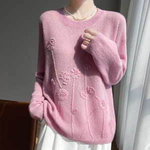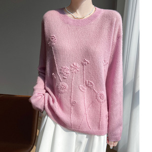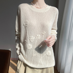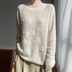 75山羊绒25桑蚕丝真丝羊绒衫法式温柔风长袖打底复古内搭毛衣