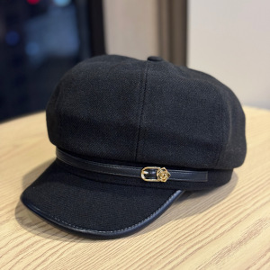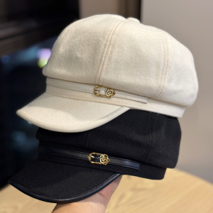 新款2025年玫瑰金属扣八角帽子女春秋季英伦风画家帽显脸小鸭舌帽