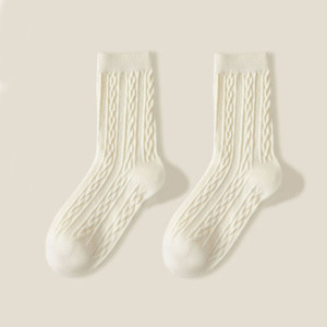 日系jk麻花袜子女四季中筒袜潮舒适透气纯色百搭甜美长筒袜月子袜
