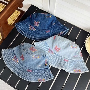设计师牛仔蝴蝶渔夫帽女甜酷日系盆帽洗水做旧宽檐遮阳帽街拍潮人