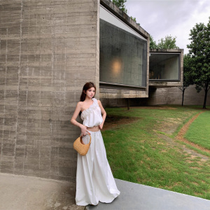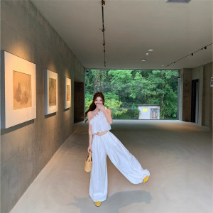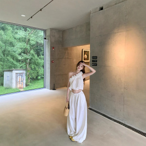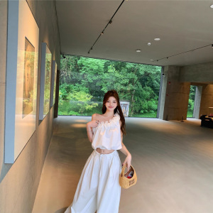 2025实拍夏季新款立体花辣妹单肩背心女夏灯笼阔腿裤长裤套装潮