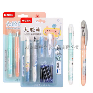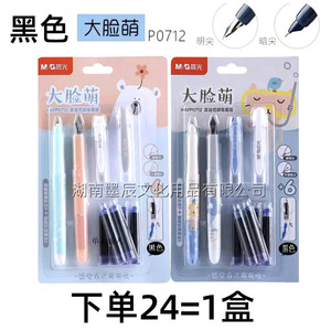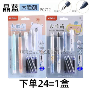 晨光0712大脸萌直液式钢笔套装晶蓝可擦墨囊钢笔小学生练字用黑色