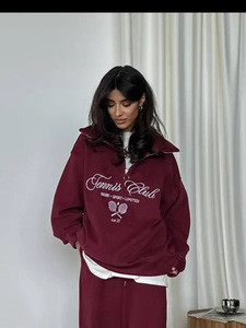 欧美洋气百搭潮流个性加绒加厚半拉链小众设计感翻领卫衣通勤上衣