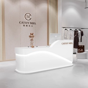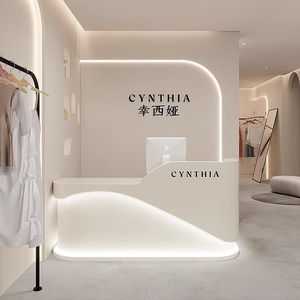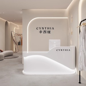 店铺小型服装店前台接待台女装店奶油风烤漆吧台美容院收银台