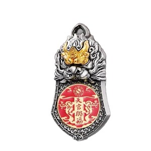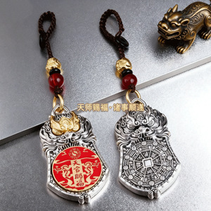 新款天官赐福吞金兽转转男女汽车钥匙扣挂件国潮银色新中式小挂件