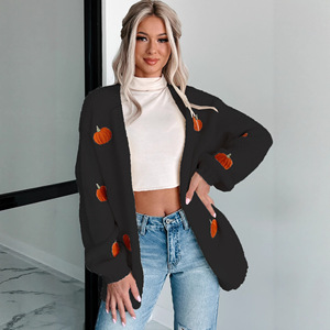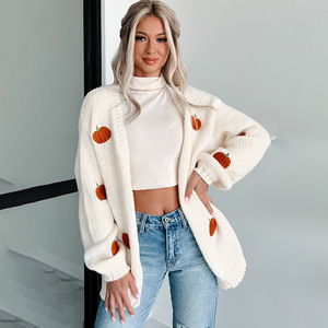 ヨーロッパとアメリカの新しい無地カボチャ刺繍立体セーターレディースストリートトレンドカーディガンセーター長袖ジャケット