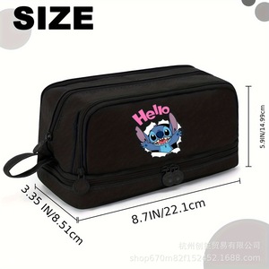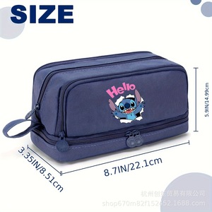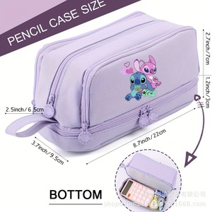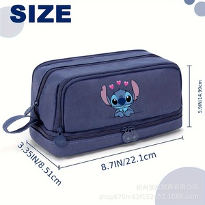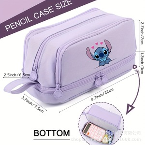 Stitch ペンバッグ 大容量文具収納バッグ 小学生用 二層子供用ポータブル文具バッグ 写真プリント付き