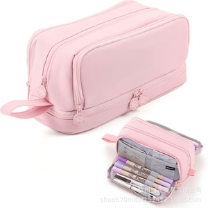 シンプルな大容量多層ペンケース中学生女子多機能筆箱小学生高校生鉛筆バッグ女の子用