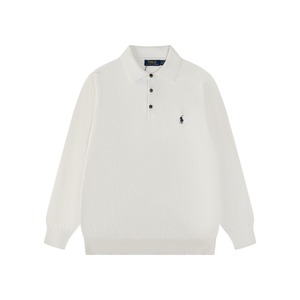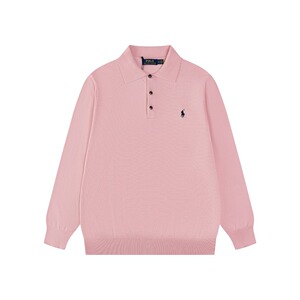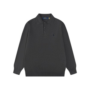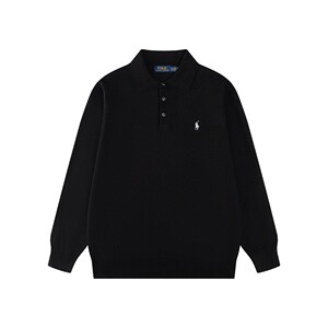 2025秋季跨境男女同款拉夫小标刺绣纯色三颗扣翻领针织长袖小众