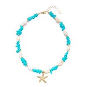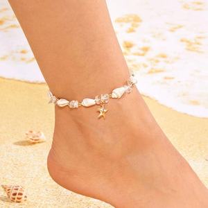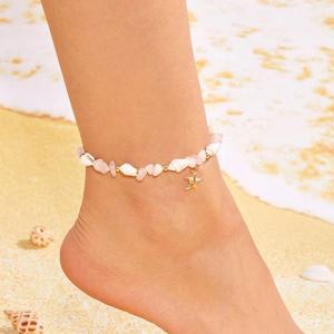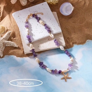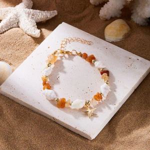 跨境新款海星手串不规则水晶碎石串珠项链复古波西米亚风脚链夏日