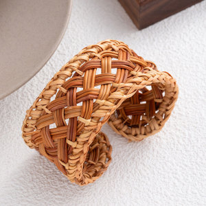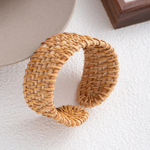 度假沙滩风藤编宽手镯波西米亚风草编手环手工编织部落民族风手镯