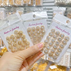 跨境耳钉耳环圆形钻锆石镶钻百搭气质高级感铜镀金金色耳饰