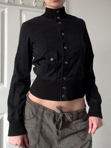 初秋の新しいアメリカンワークウェアスタイルの大きなポケットスタンドカラーカーディガンジャケットホットガールウエストショートカジュアルジャケットトップ