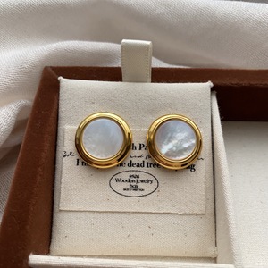 经典圆形天然贝壳耳钉耳饰时尚简约百搭气质高级感耳环2025年爆款
