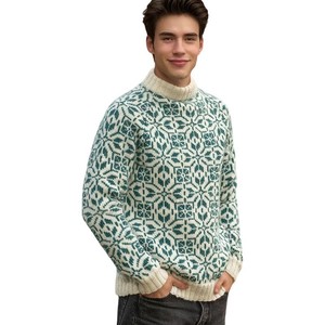 2025跨境新款简约复古清新提花毛衣宽松街头嘻哈套头撞色长袖针织