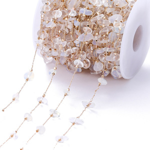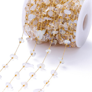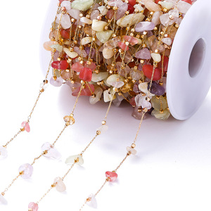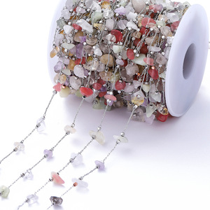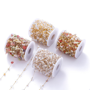 ins度假风波西米亚天然石链子彩色碎石铜项链辅diy饰品配件批发