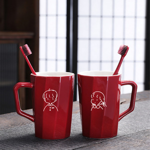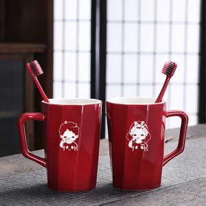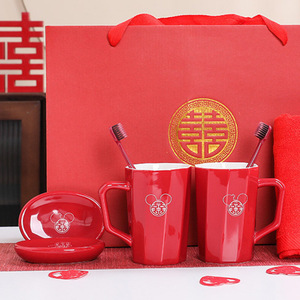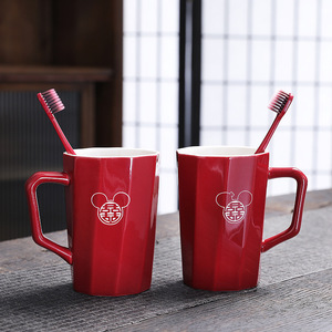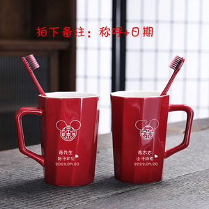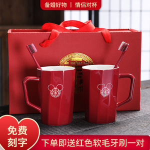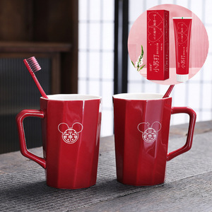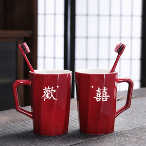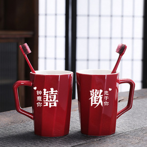结婚洗漱杯一对红色新婚情侣牙杯家用漱口杯刷牙杯子套装陪嫁用品