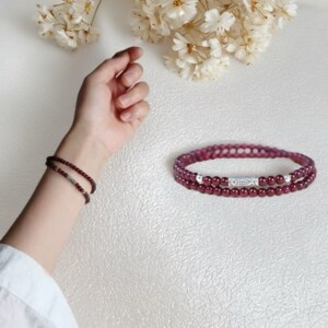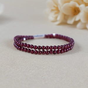 花时集天然石榴石手串女款 酒红双圈三圈925银手链多圈原创新中式