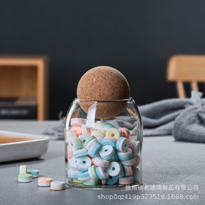 コルクボールプラグ透明ガラス縦模様保存瓶ガラス密封瓶キッチンガラスボトル茶瓶保存瓶